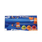そんな中でもこのテニスボール・ブラスターは実弾を撃ち出すということで、従来のNERFブラスターのように遊べるのではないか…と注目を集めるブラスターです。パッケージでの飛距離は15m。専用の軽量品とはいえテニスボールを15m飛ばすと考えればなかなかのパワーですね。